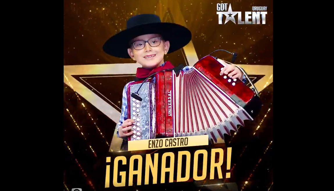 El niño de siete años, oriundo del departamento de Rivera, se consagró luego de sorprender al jurado con su habilidad para tocar el acordeón a piano con el que consiguió el «botón dorado» para llegar a las instancias decisivas del concurso que se terminó adjudicando.