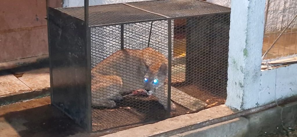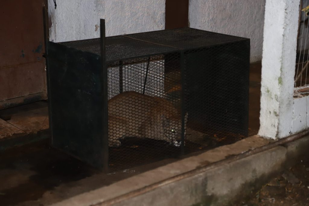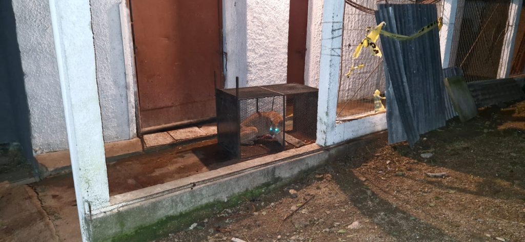 Durante el día el ejemplar hembra que fugó anoche, al ser una especie nacida en cautiverio y temerosa, no se mostró durante la jornada, pero al caer la noche salió a buscar alimento.