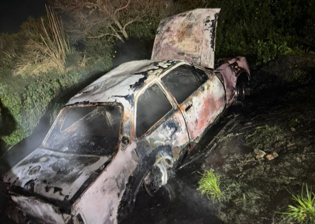 El vehículo en llamas fue encontrado sobre las 21:48 de este lunes 15 de octubre, en un predio baldío cercano a Camino al Pantanal y Calle Pública Nº 2, próximo a la entrada de la Cementera en Maldonado. La Policía se presentó en el lugar y solicitó la presencia de Bomberos, quienes extinguieron el fuego.