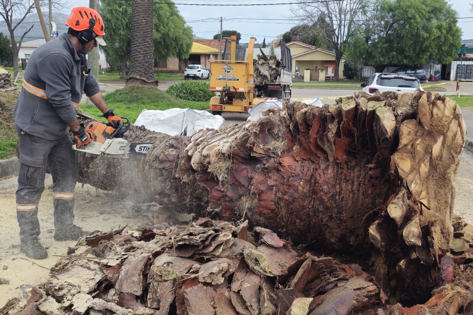 Noguéz explicó que desde el inicio se han desarrollado tareas preventivas como la endoterapia -tratamiento interno para proteger los ejemplares- junto a la instalación de duchas químicas y la extracción de palmeras infectadas en espacios públicos. A la fecha se contabilizan unos 350 ejemplares afectados, más del 70 % en predios privados y se han retirado aproximadamente 50 palmeras del espacio público.