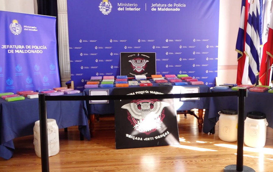 El subjefe de Policía de Maldonado, Jorge Guerra, brindó detalles del operativo desplegado por la La Brigada Departamental Antidrogas de la Jefatura de Policía de Maldonado en el barrio Jardín los 33, donde un importante operativo permitió la incautación de 53 kilos de cocaína de máxima pureza, en el marco de una investigación sobre organizaciones criminales dedicadas a la comercialización de estupefacientes en el departamento.