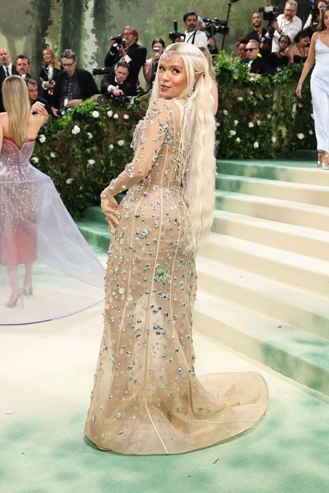 La Met Gala es un evento para recaudar fondos para el Instituto del Vestido del Museo Metropolitano de Arte de la ciudad de Nueva York. La temática de este año es «Bellezas durmientes: El despertar de la moda» y el código de vestimenta para la red carpet de este año es «El Jardín del Tiempo», un relato escrito en 1962 por el autor británico J. G. Ballard, ambientado en un jardín lleno de flores translúcidas que manipulan el tiempo.