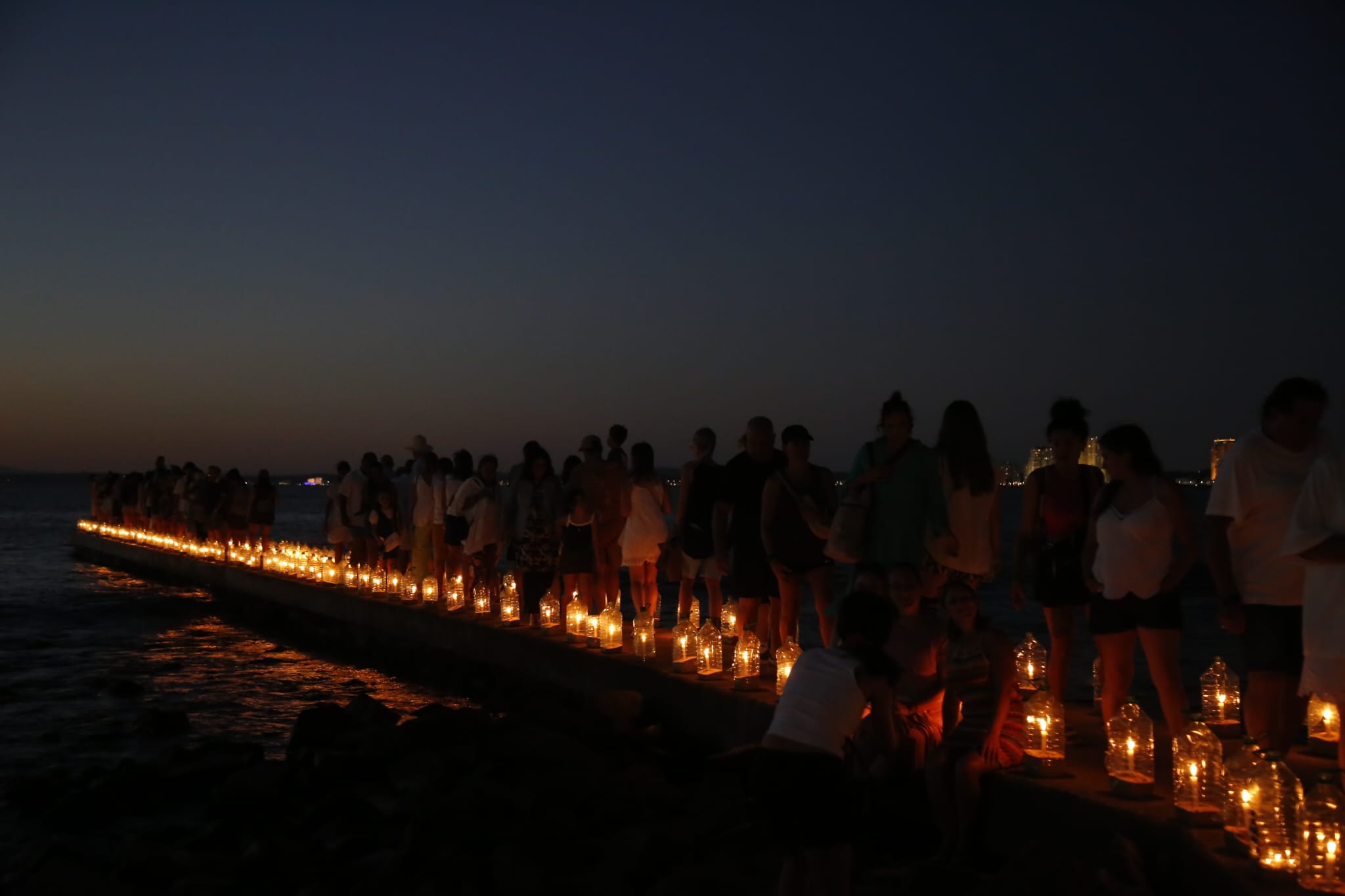 Con la iluminación de cientos de velas sobre la estructura y la franja de playa, el Muelle Mailhos renovó su presencia como testimonio vivo de la historia esteña.