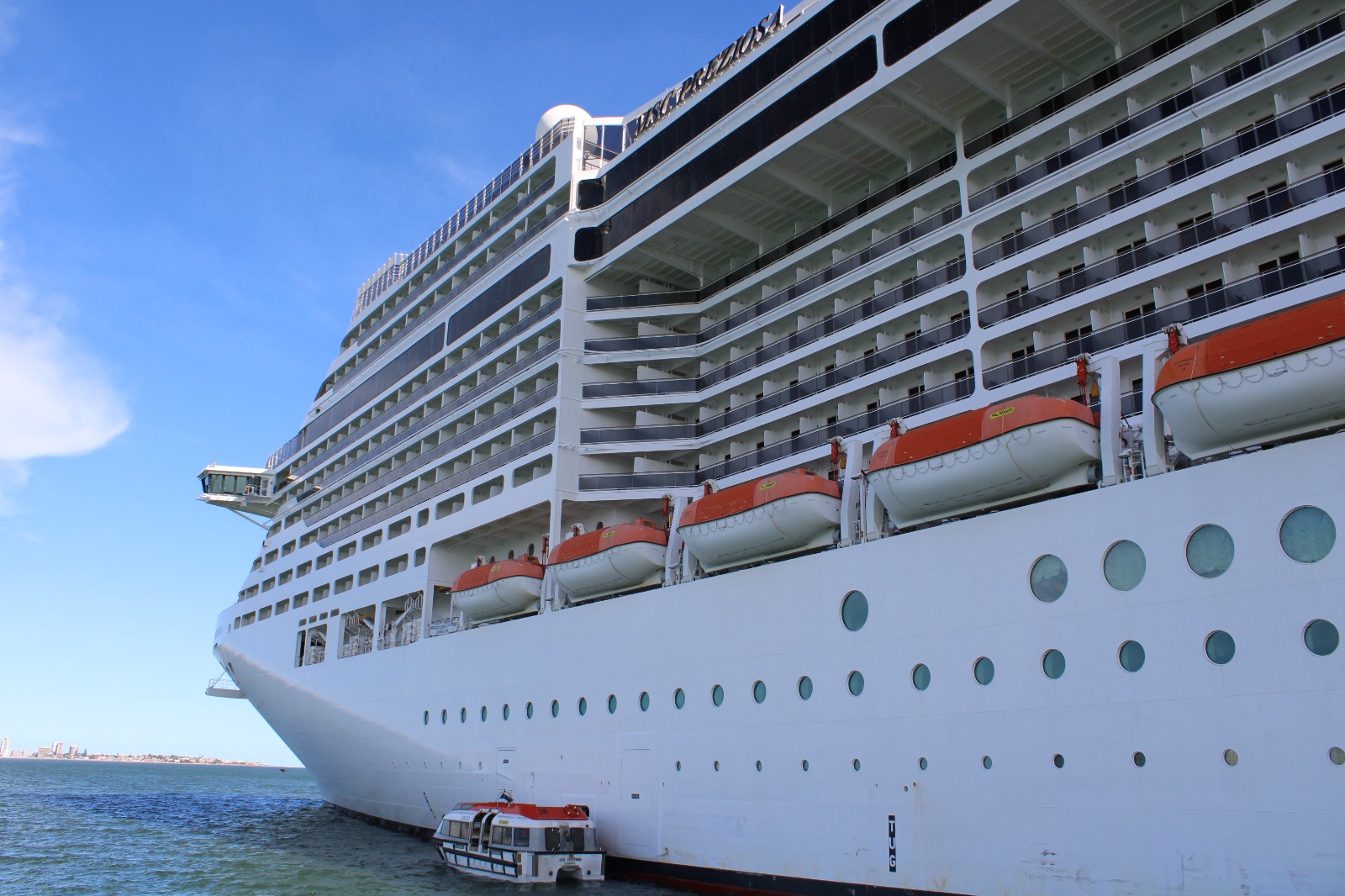 El crucero MSC Preziosa abrió sus puertas con una visita que incluyó un recorrido por sus impresionantes instalaciones, y de la que participaron autoridades y medios de comunicación. El buque llegó este martes 21 de marzo a Punta del Este con 1500 tripulantes y 4500 pasajeros, en su mayoría provenientes de Brasil.