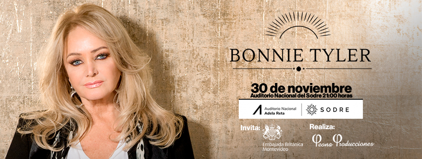 La cantante galesa tenía previsto actuar en nuestro país el año pasado, pero el show fue suspendido en dos ocasiones por la pandemia. En esta oportunidad se presenta por primera vez en Uruguay el 30 de noviembre en el Auditorio Nacional del Sodre «Adela Reta», en el marco de su gira mundial Bonnie Tyler 50 años.